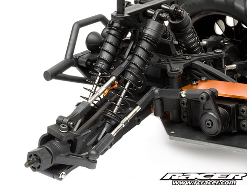 Beefy suspension braces protect the suspension pins from crash damage and prevent the pins from bending or breaking in a really hard crash.