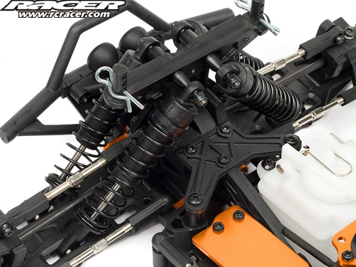 Extra-long suspension arms provide stability, and thick suspension pins give you extra insurance against crash damage. Both shocks on each arm are ‘captured’, meaning the mounting screw attaches on both sides of the shock end for extra durability in any type of conditions.