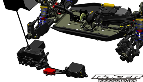 - The RX battery is also sunk in the chassis for lowest CofG and is centrally mounted at the rear of the car.