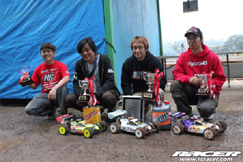 The JMRCA (Japanese) Nationals were held this past weekend in Chiba and attracts the best drivers from across the country including up-and-coming racers and seasoned vets. The track was even more challenging this year because of the persistent rain and this meant the racing surface was a major consideration for the whole weekend. Most drivers were experiencing difficulty getting a good foothold on the track, but Kazuya Tanaka had the secret, his Kyosho MP9 TKI 2 and a great set-up that consisted of the perfect slick tyre and the new Kyosho MP9 orange springs. Kyosho dominated the A finals with seven out of ten cars being MP9s and Kazuya Tanaka taking the overall win from team mates Atsushi Kawamoto and Itaru Kawamoto making it a podium lock out for the Japanese brand.