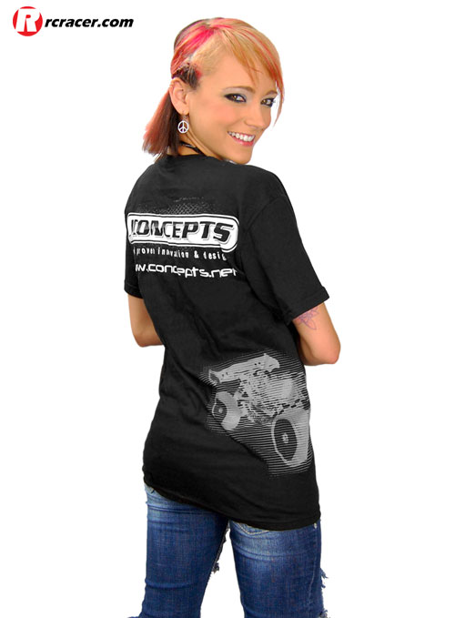The latest addition to the JConcepts clothing range is the new black 1:8 buggy T-shirt. Made from 100 per cent cotton material, the new black t-shirt has trendy new looks that is representative of the latest style. It includes a new logo and a graphically clever 1:8 buggy design on the hip.