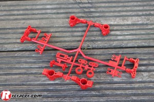 The steering and upright components are moulded in a bright red plastic which also harks back to off road buggies that came with some parts in brightly moulded plastic differentiating them from the chassis parts.