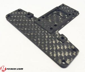 This is the new carbon fibre T-plate for the TeamC TC02C Evo from Inside Line Racing to go alongside their growing range of option parts. The beautiful new T-plate has been CNC machined from a single piece of 6mm thick carbon fibre to give improved accuracy, rigidity and strength over the kit supplied plastic version. It utilises the TeamC RF hanger from the TC02 rear motor model that again adds to strength and tuneability of this new option part. All of this combined adds up to a sharper handling and stronger car for the racer that wants to get the most out of his TC02C Evo.